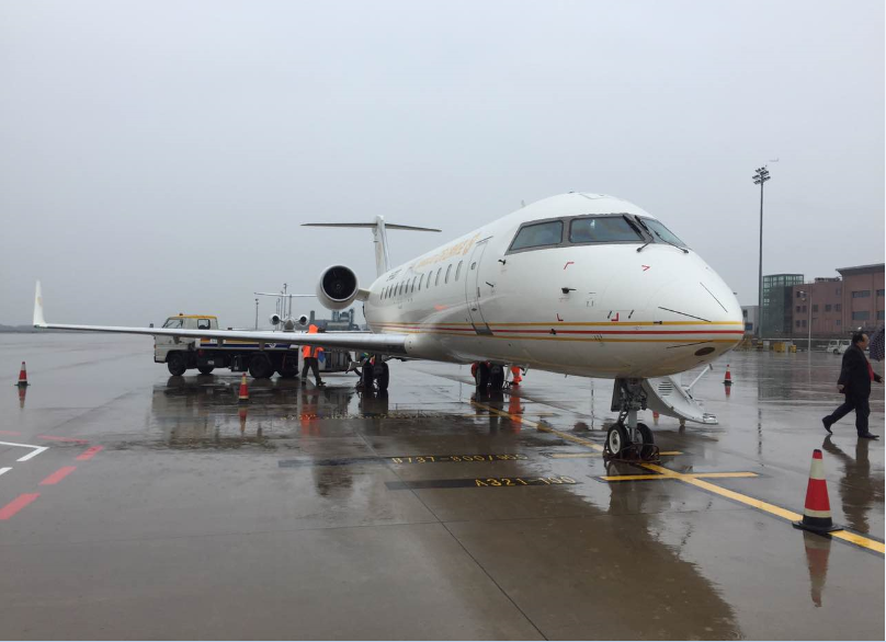 929日,受臺風“鲇魚”影響,南京上空烏云密布,風雨相伴下江蘇公務航空首架改裝后的CRJ-200B-3007飛機依然如約順利抵達南京祿口國際機場。